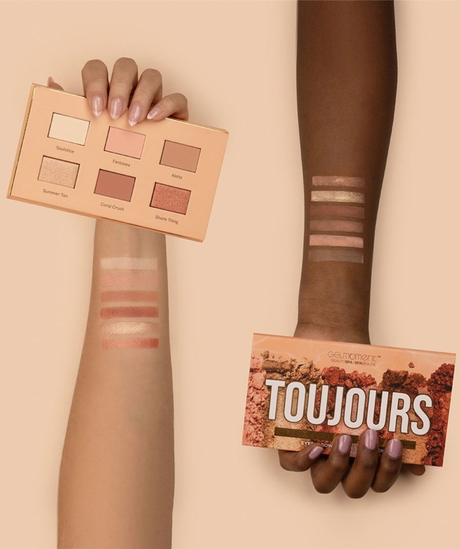 ranging from creamy neutrals with buttery matte finishes, to dewy metallic sheens, to iridescent shimmers. Whether you prefer your eyeshadow light and natural or bold with pigment, Toujours Eyeshadow Palettes are buildable and balanced, offering a wide range of potential looks and combinations. Their rich, velvety finish combined with a lightweight feel, sets the stage for hours of comfort and confidence.